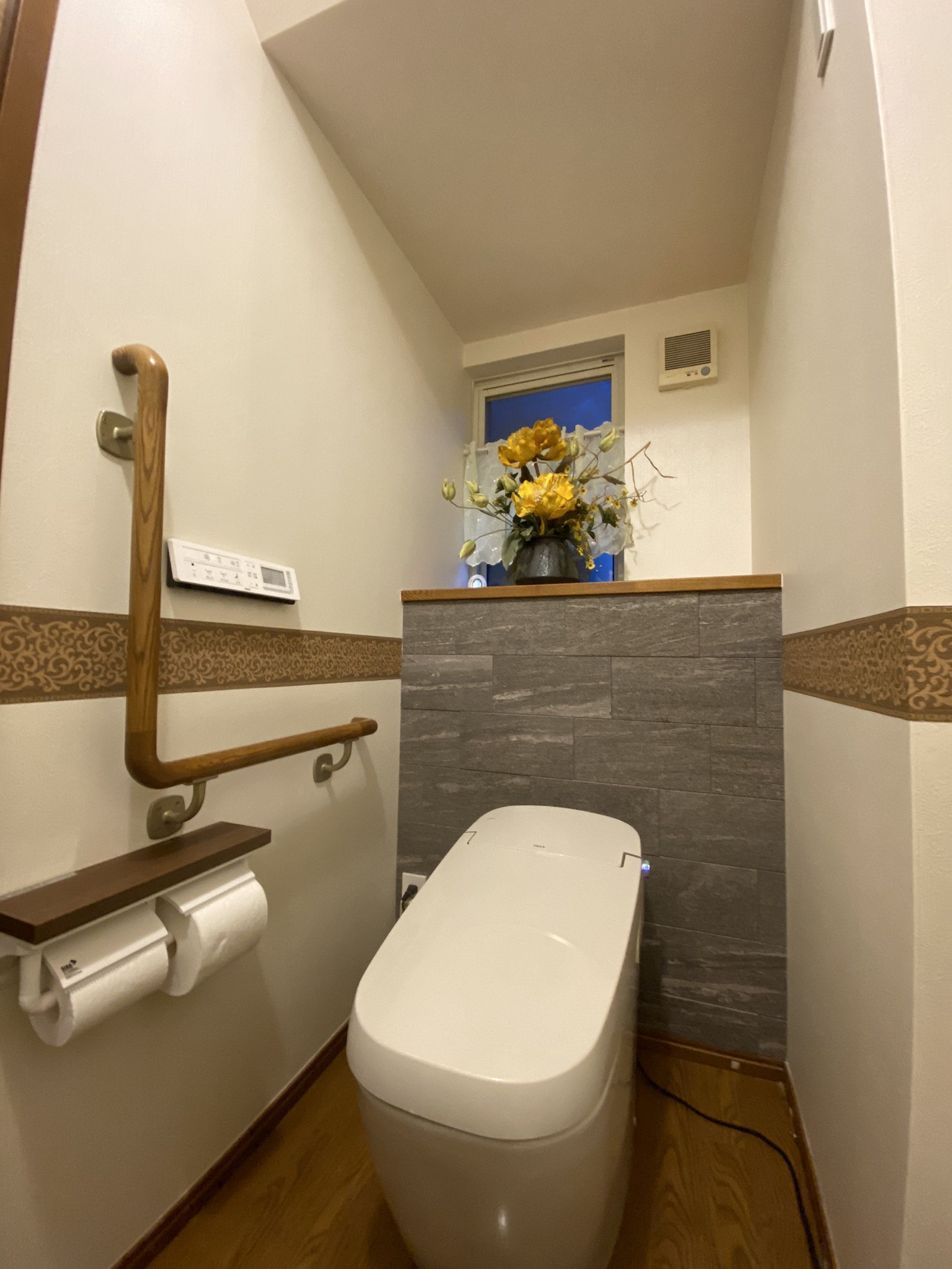 便器交換、クロス張り替え、エコカラットの施工をしました。