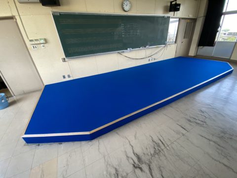 古くて剥がれていたカーペットを撤去し、鮮やかなブルーのパンチカーペットへ。