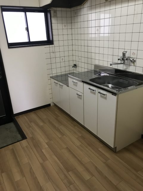 入居率を高める為にキッチンの入れ替えをし、汚れていたクッションフロアもモダンな印象の物に張り替えました。